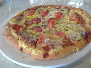お腹が空いたので緑に囲まれたオシャレなレストラン「Frogs」でミックスピザをシェアしました。