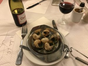 ワインとエスカルゴとチキンとチョコムースを注文しました。
