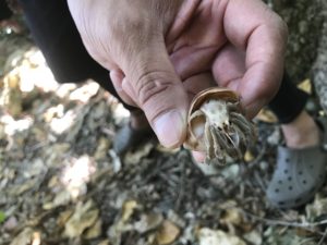 神社の裏の山の中ではアカガシラカラスバトやヤドカリなど沢山の生き物と遭遇しました。