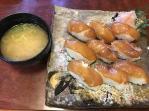「小剣先山」から近かったので「大魚寿司」で島寿司をいただきました。