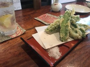 まずは「茶里亭」一番乗り。「四角豆」や「島魚のさつま揚げ」など珍しいモノで乾杯。