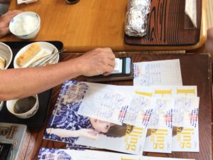 宿に戻って帰りの支度、お支払いは「シマポ」で。