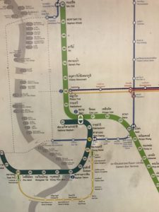 シャワーを浴びて19時過ぎ両替に行こうとモノレールの様な電車BTSに乗りサラデーン(Sala Daeng)駅へ。