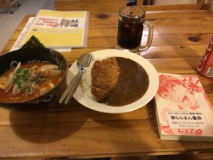 宿のスイカハウス1階にある「ドンちゃん」(下の写真)でカツカレーと味噌ラーメン。