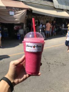 ドラゴンフルーツとスイカを混ぜたスムージー。これがめっちゃ美味かった。50バーツ