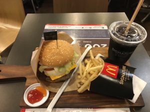 その後ショッピングモールのフードコート内で、チーズバーガセットを注文。184バーツ