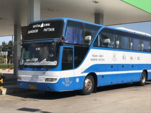 発車時刻に「BANGKOK – PATTAYA」と書かれた青と白のバスに乗り込み出発。