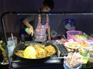 通りの飲み屋の中にはムエタイの試合をさせてくれる所があって、ギャラリーがそれを観て盛り上がるバーもありました。
