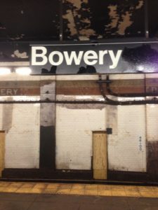 電車に揺られて地下に入っていくと暫くしてBowery駅に到着、汚い感じの駅です。