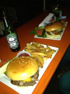 ニューヨーク証券取引所の近くにあったビアガーデンで本場のハンバーガーをいただきました。
